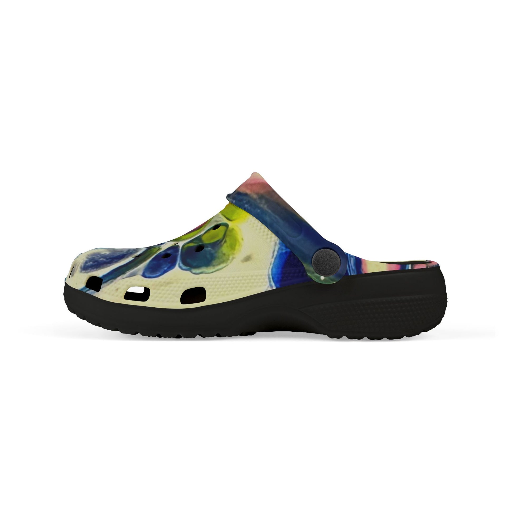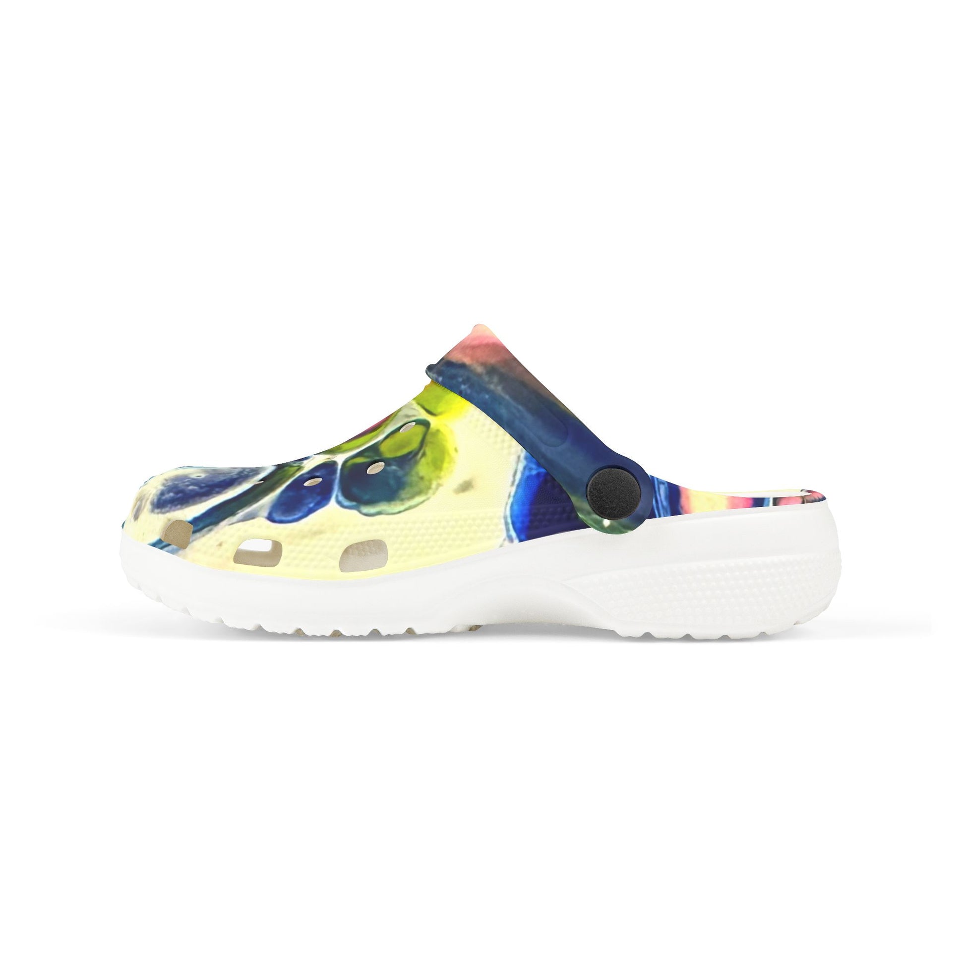 Light, playful, and built for small adventurers — these foam clogs bring color and comfort to every step. The breathable EVA construction hugs little feet with a gentle arch and flexible sole, while the vibrant all-over print adds a splash of imagination to puddle jumps, playground routes, and lazy backyard afternoons. A swivel strap keeps them secure during active play, and small charm accessories let kids personalize their pair. Easy to rinse clean and ultra-lightweight, these clogs feel like summer mornings and spontaneous runs across the yard.