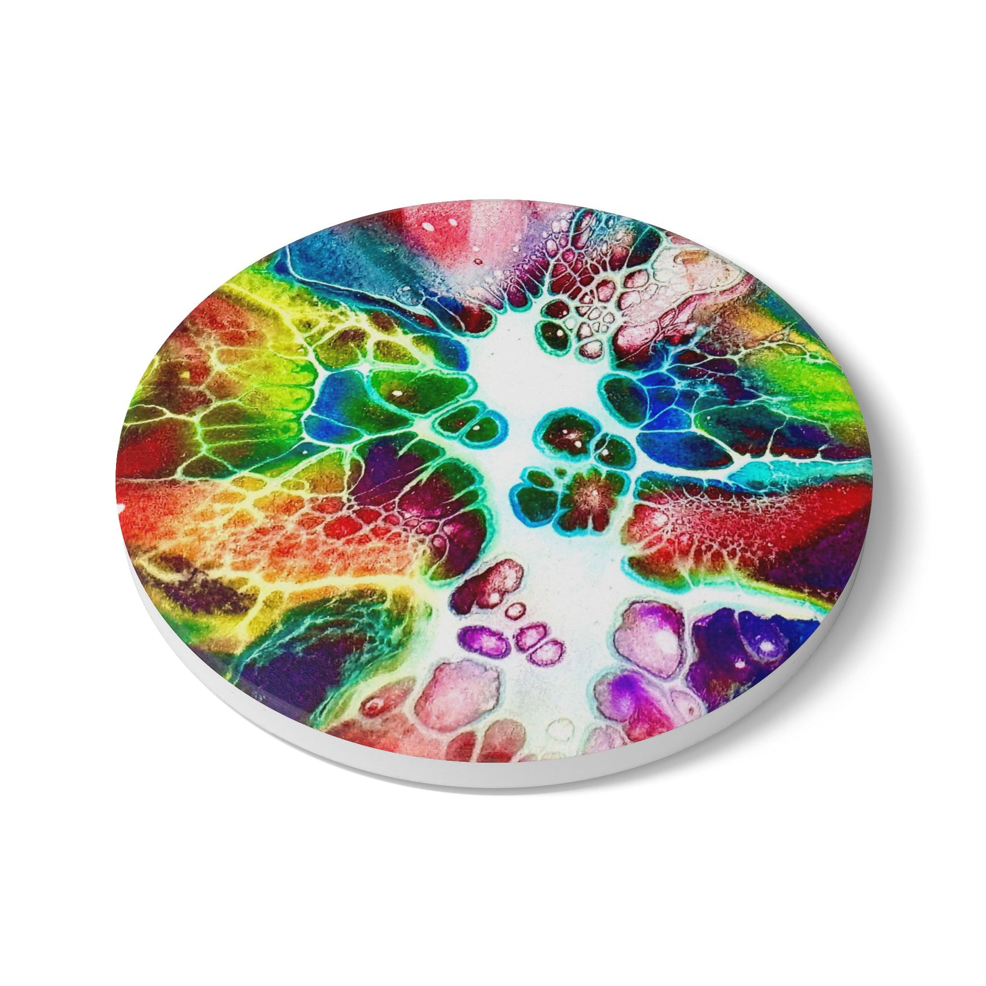Add a splash of color to your space with this vibrant ceramic coaster, perfect for any setting. Its unique design not only adds style but also protects your surfaces from beverage spills. This coaster creates a warm and inviting atmosphere, making it an ideal addition to your home decor. It's perfect for anyone who loves art and wants to enhance their living space with functional decor. Great as a gift for housewarmings, birthdays, or holidays like Christmas and Thanksgiving, this coaster is sure to impress friends and family alike. Embrace the joy of gathering with loved ones, and make every drink special with this artistic touch!