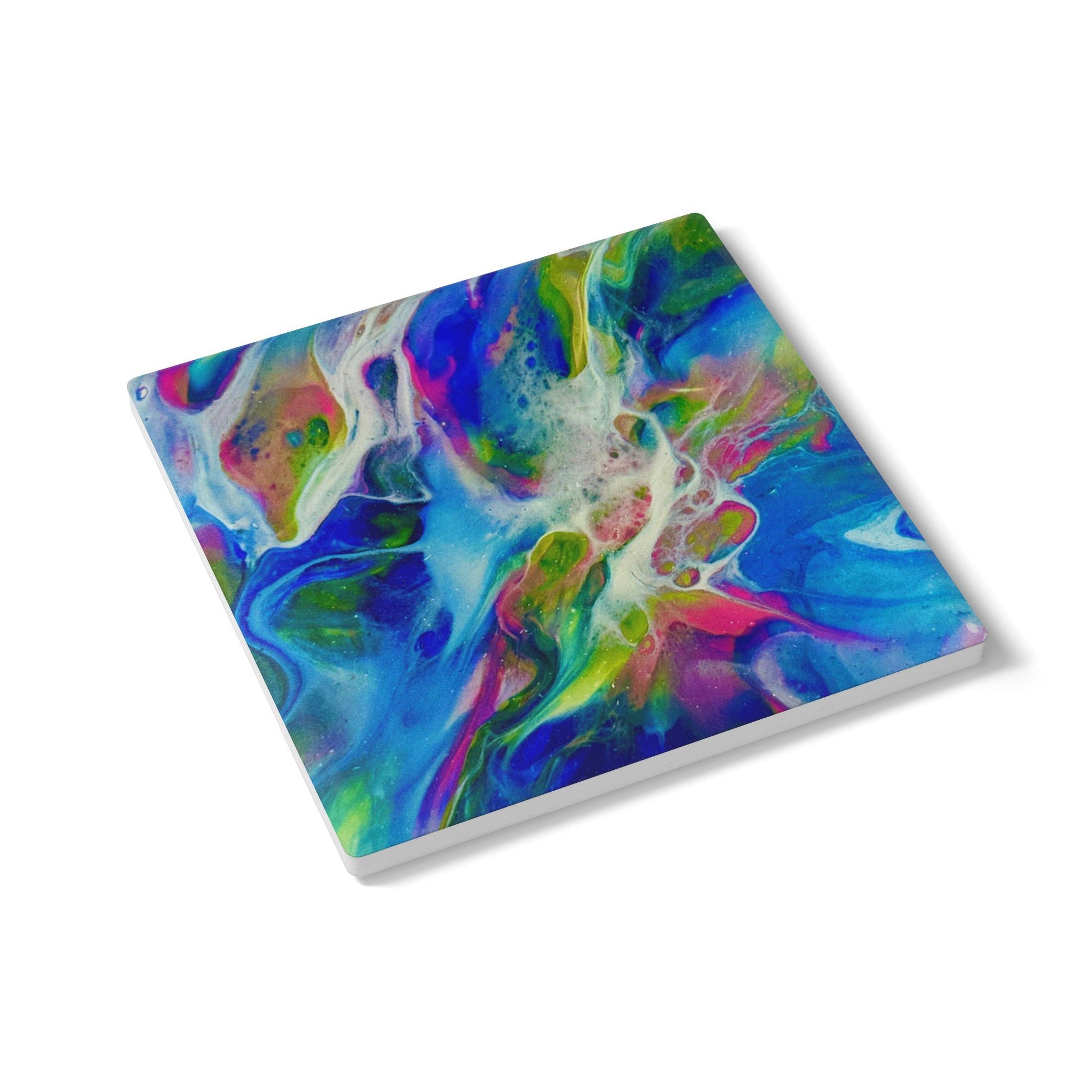Add a splash of color to your home decor with these vibrant ceramic coasters. Featuring a stunning abstract design, they bring an artistic flair to your coffee table or dining area. Perfect for both hot and cold beverages, these coasters are essential for anyone who loves entertaining guests or simply enjoying a cozy drink at home. Their durable construction ensures they withstand everyday use while the non-slip cork backing prevents spills and accidents. Ideal for housewarming gifts, birthdays, or any occasion where you want to add a personal touch. These coasters are especially suited for art enthusiasts and individuals who appreciate unique home decor items.